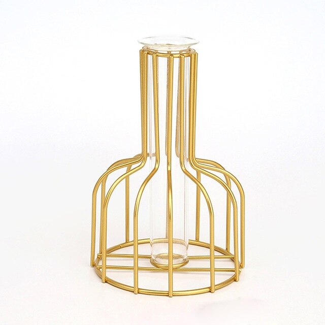 HHS Nordic Style Iron Line Art Hydroponic Flowers Vase Pot Trays Metal Plant Holder stand Modern Solid Desktop Decoration