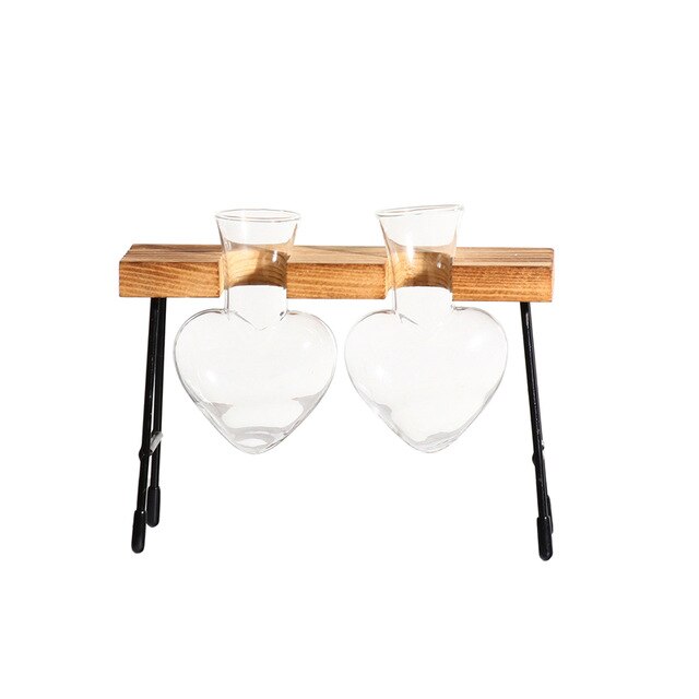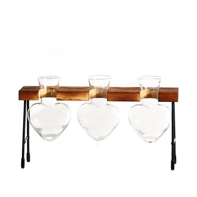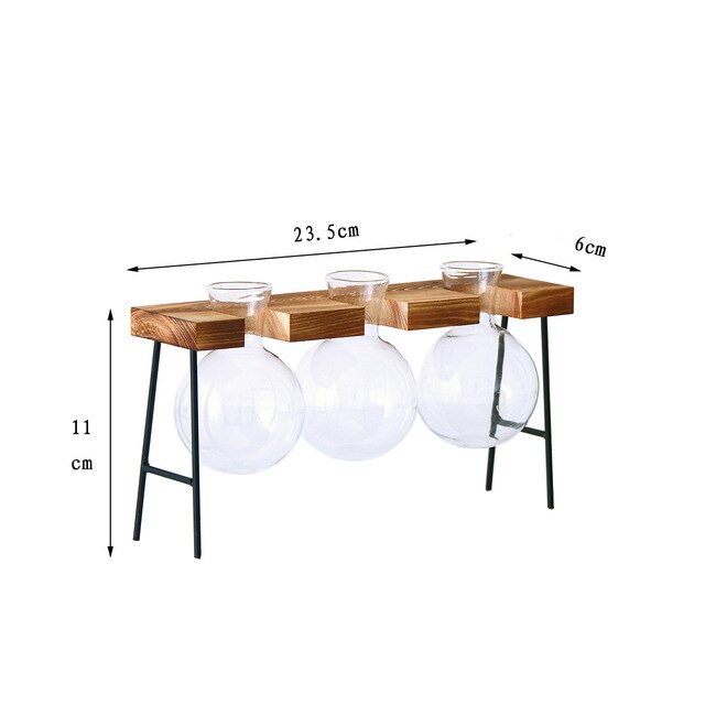 Nordic Glass Tabletop Plants Bonsai Wooden Art Iron Frame Hydroponic Container Flower Pot Green Dill Plant Glass Vase Decoration