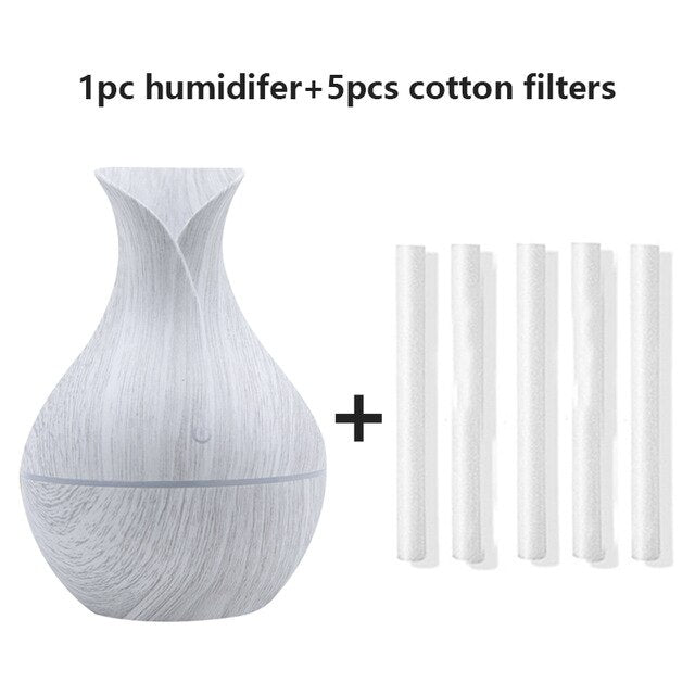 130ML USB Air Mini Humidifier Wood Grain Vase Colorful Electric Ultrasonic Mist Oil Diffuser Aromatherapy For Car Home Office