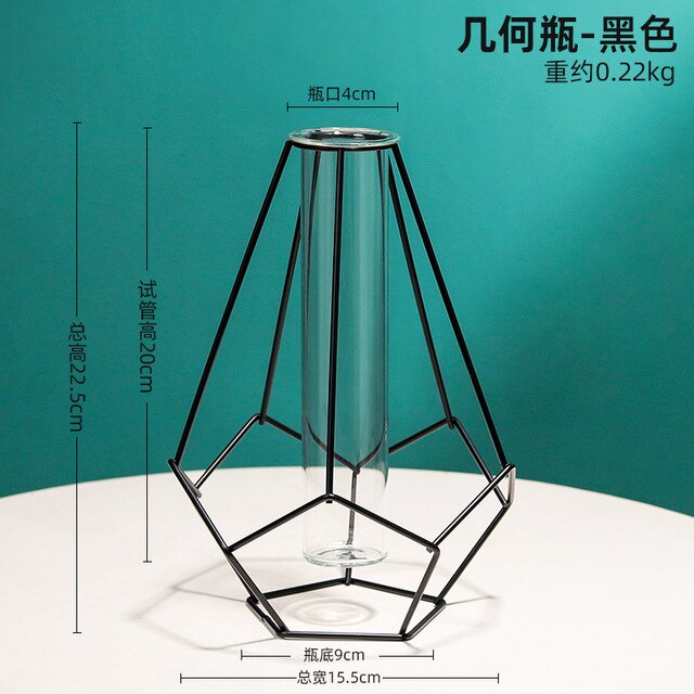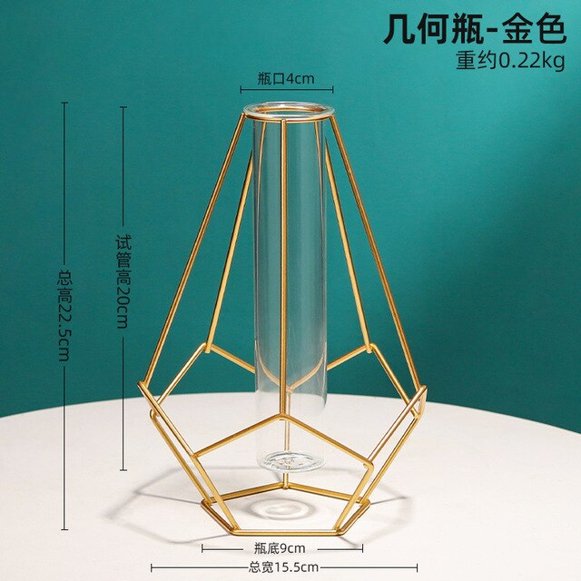 Nordic Golden Glass Vase Terrarium Geometric Iron Line Vase Hydroponic Plant Flower Vase Metal Plant Holder Home Decor Modern